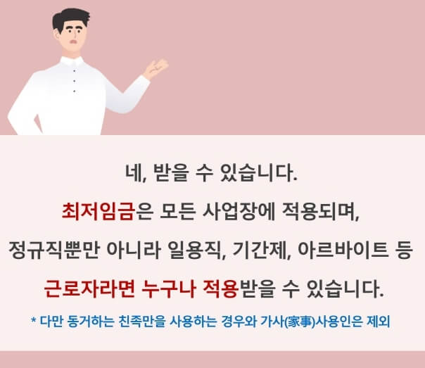 - 단, 동거하는 친족만을 사용하는 사업과 가사사용인에게는 적용하지 않습니다.